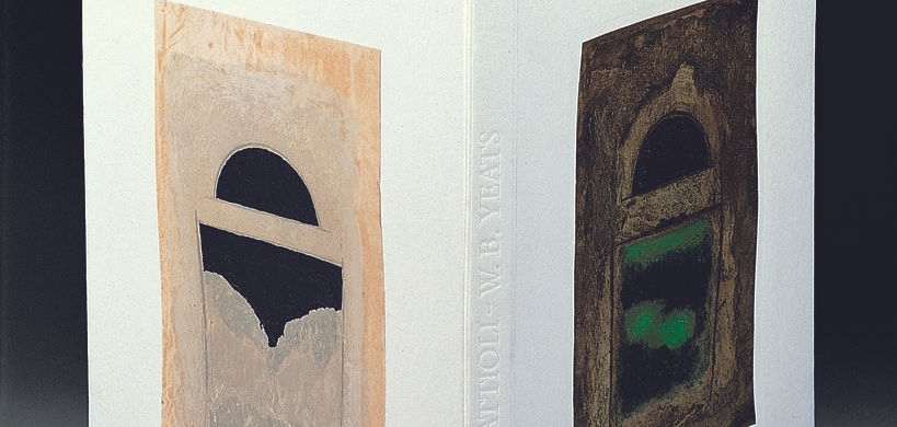 Four poems by William Butler Yeats and six mixed techniques (cover included) by Carlo Mattioli, numbered and signed by the Artist. Text set by Ruggero Olivieri, Milan and handpress printed by Alessandro Zanella, Santa Lucia ai Monti on Hahnemühle 280g. Graphics printed by Arte Tre, Milan on Hahnemühle 80g; stuck on Aetna 700g hand-made by Sicars.